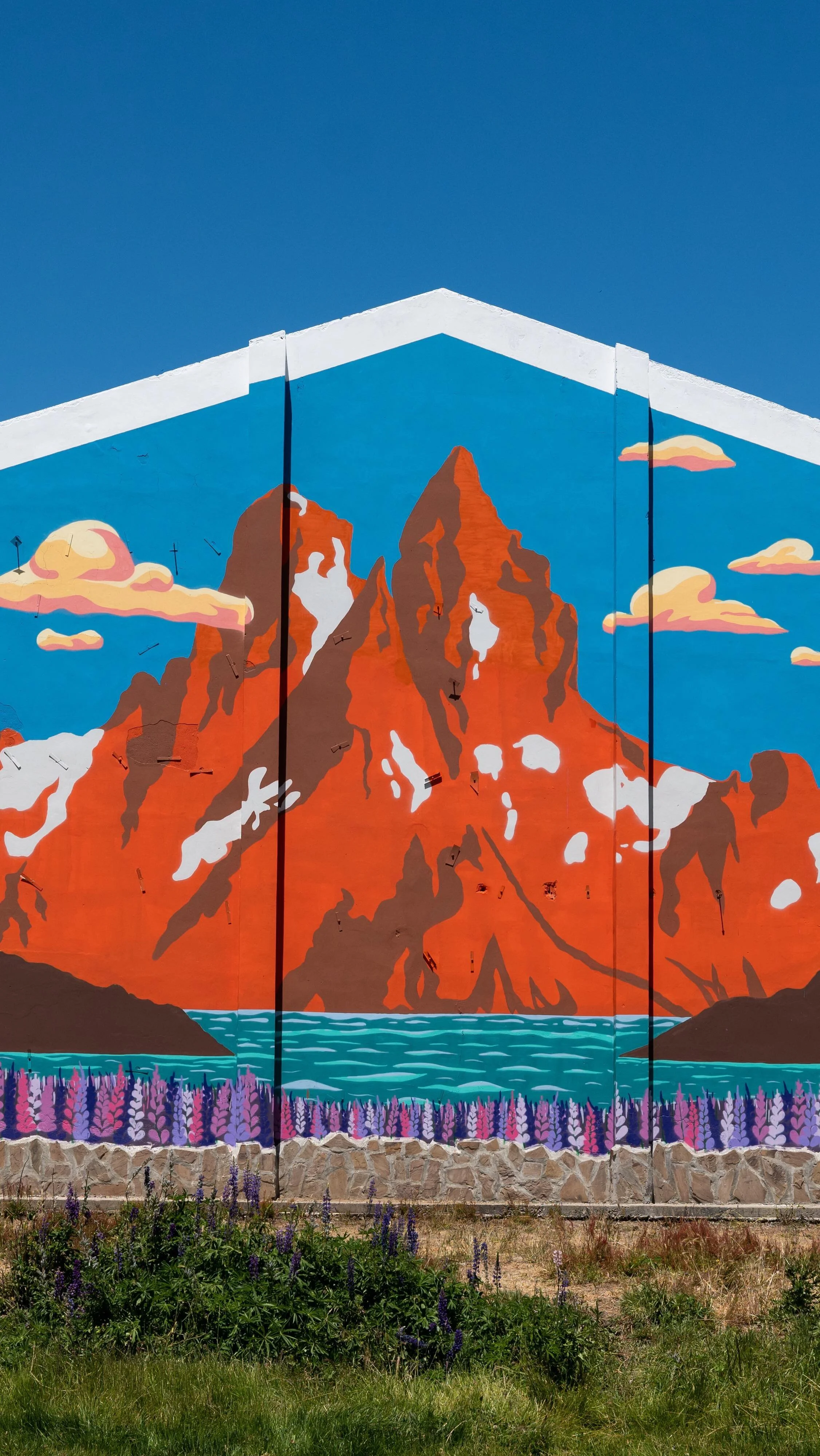Le mur du gymnase de ce charmant village situé au pied de la cordillère des Andes. Celui-ci regarde les magnifiques montagnes “Los Tres Picos”. Vision immortalisée d’une soirée de printemps.